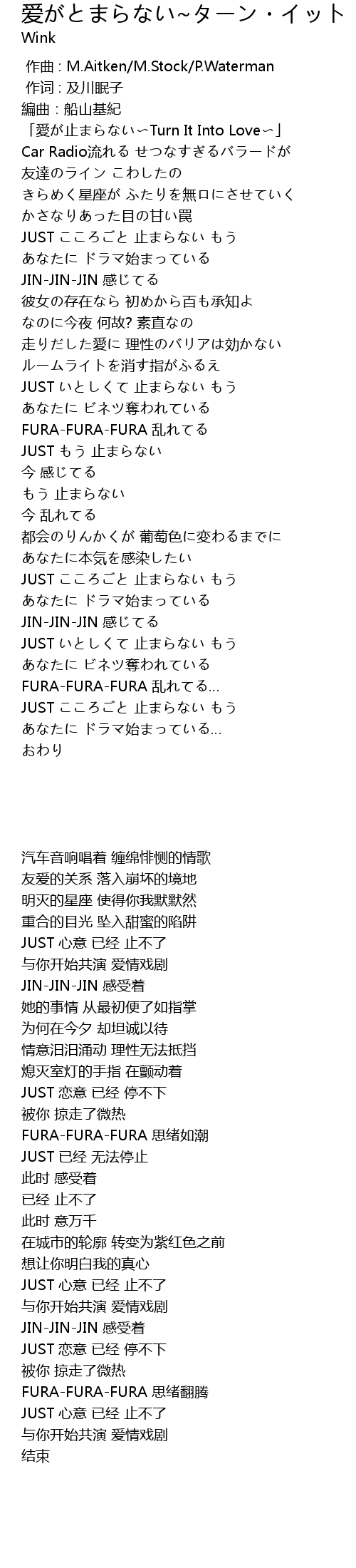 | [00:09.31] | 「愛が止まらない〜Turn It Into Love〜」 |