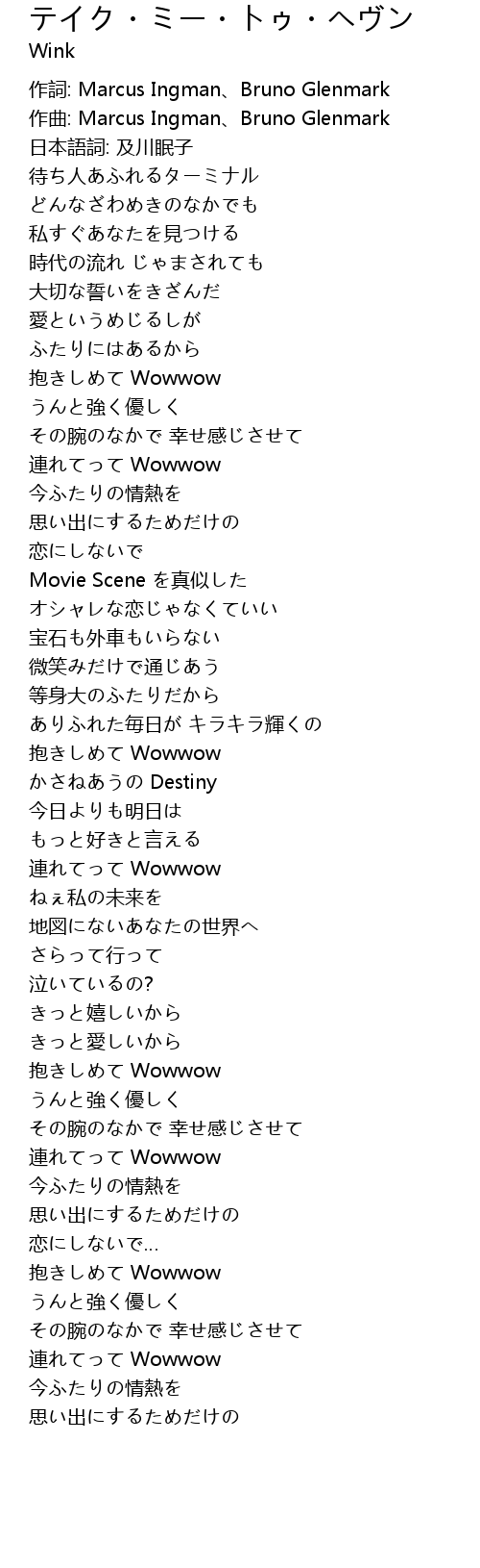 | 歌曲 | テイク・ミー・トゥ・ヘヴン |