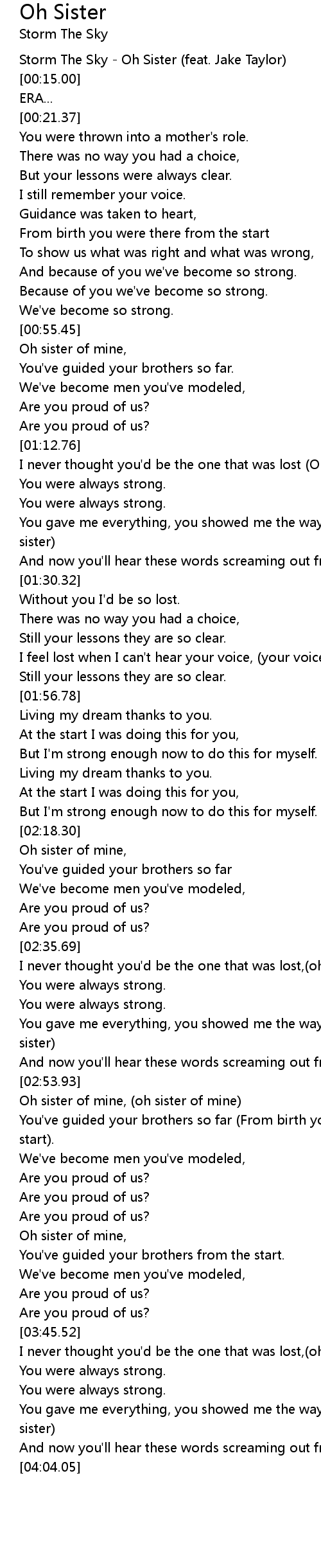 Storm The Sky - Oh Sister (feat. Jake Taylor) |