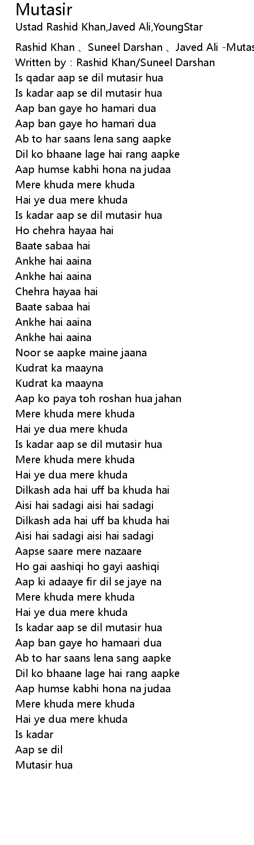 | [00:02.454] | Written by: Rashid Khan Suneel Darshan |