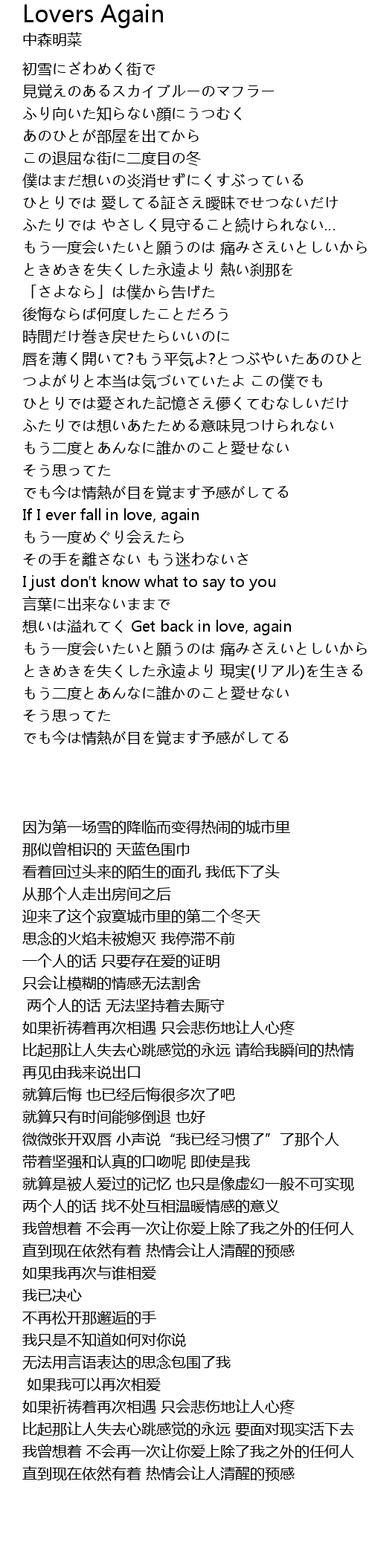 | [03:45.60] | 想いは溢れてく Get back in love, again |