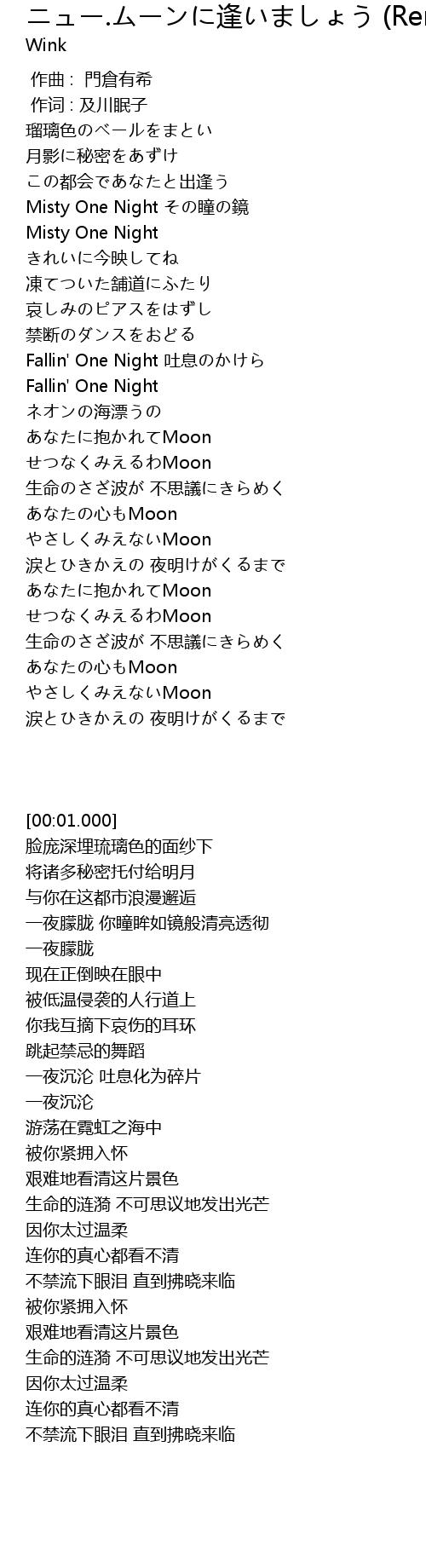 | [00:47.000] | Misty One Night tóng jìng |