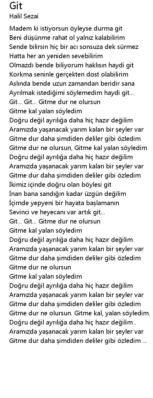 | Gitme dur ne olursun. Gitme kal, yalan s yledim. | |
