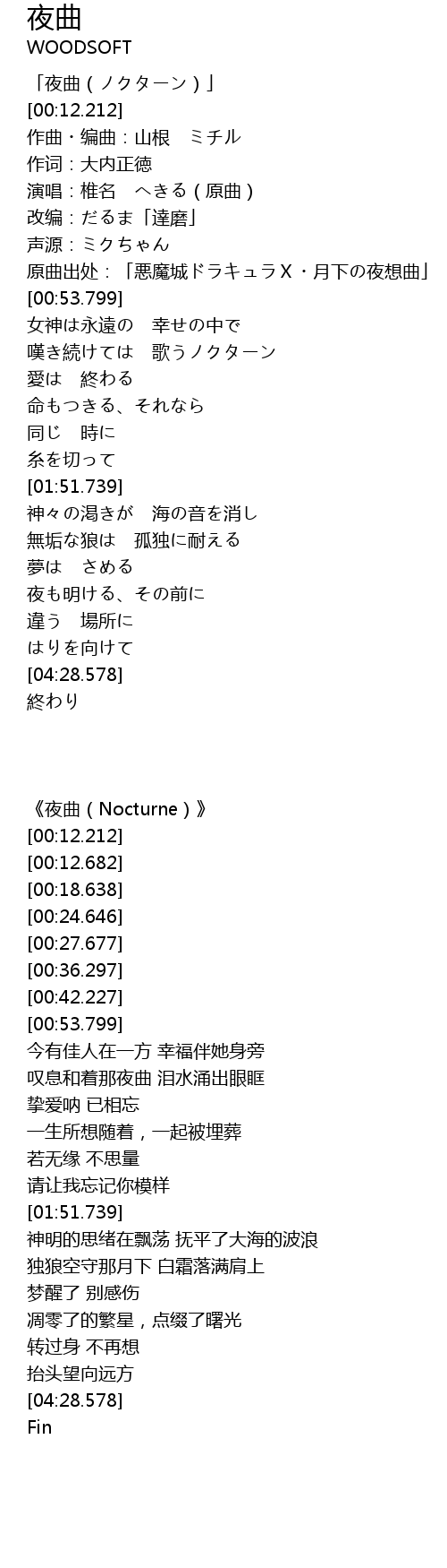 | [00:42.227] | 原曲出处:「悪魔城ドラキュラX・月下の夜想曲」 |