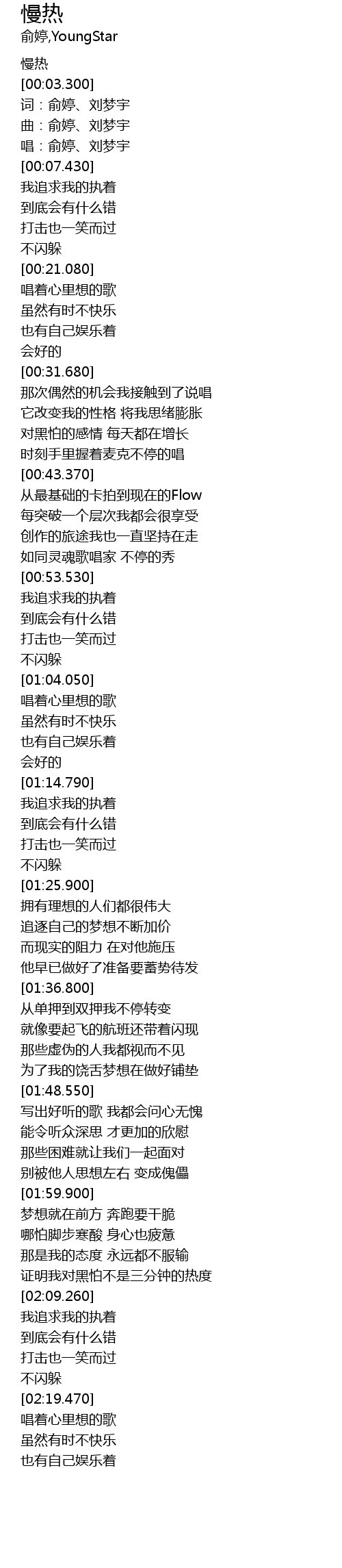| [00:04.500] | 词:俞婷、刘梦宇 |