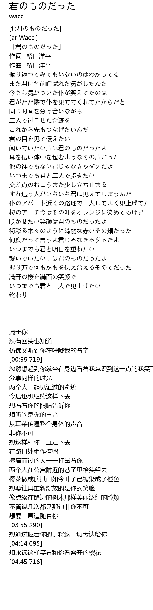 | [02:08.935] | いつまでも君と二人で歩きたい |