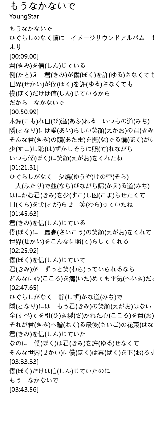 | [00:06.00] | ひぐらしのなく頃に イメージサウンドアルバム もうなかないで より |