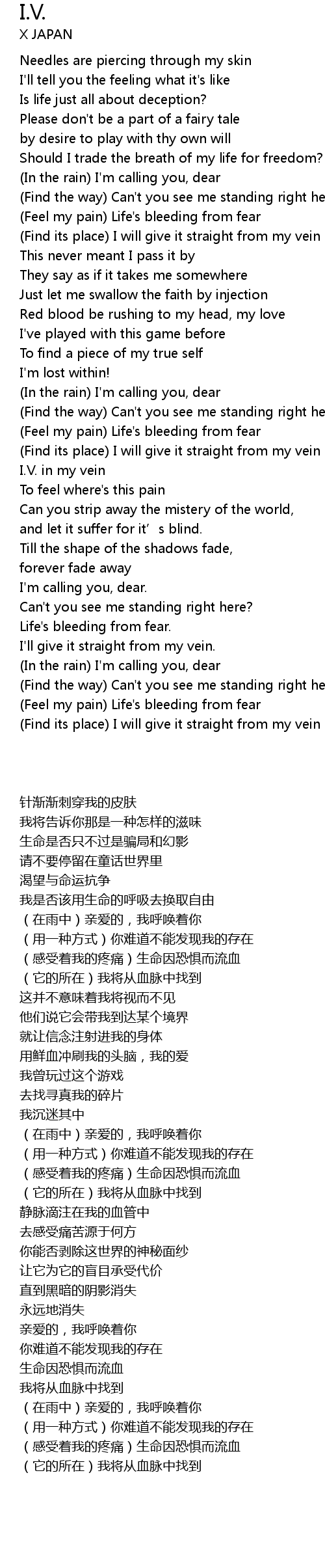 | [00:37.47] | Needles are piercing through my skin |