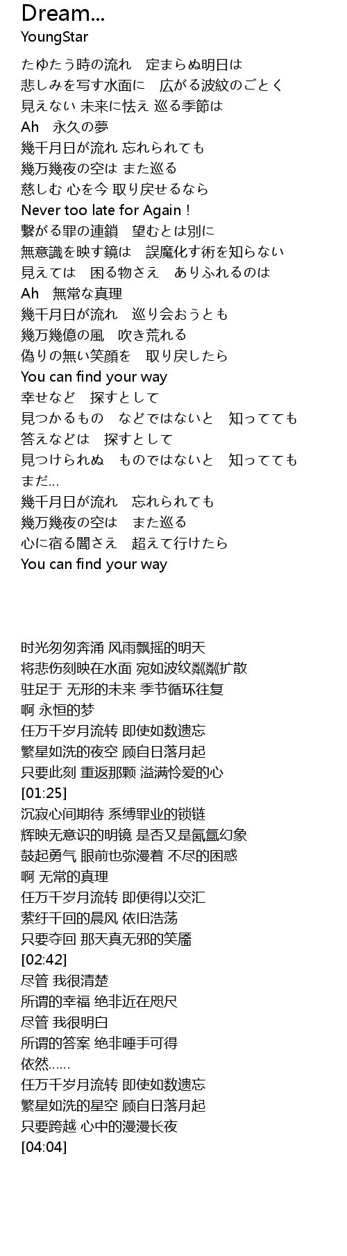 | [00:59] | Ah 永久の夢 |