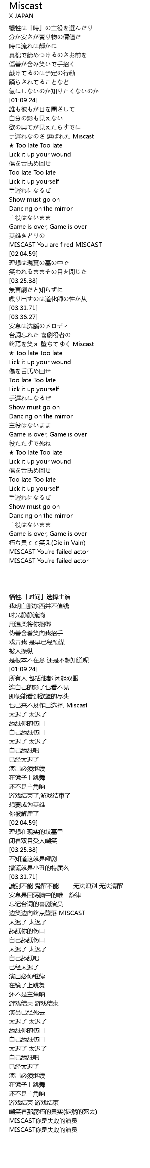| [01:28.99] | 手遲れなのさ 選ばれた Miscast |