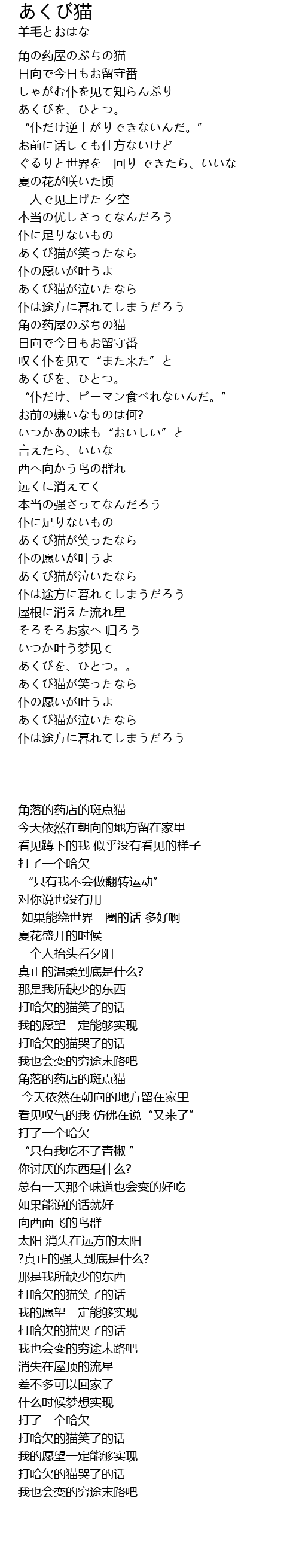 | [04:13.080] | 打哈欠的猫哭了的话 |