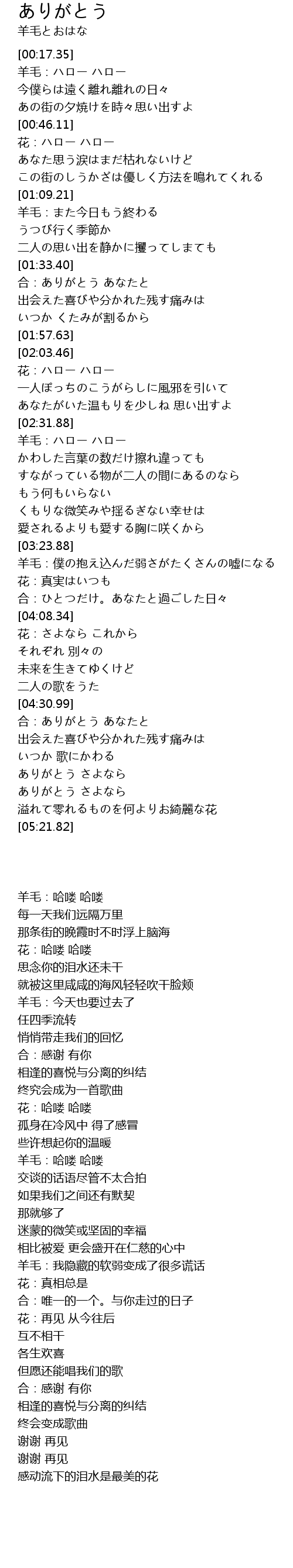 | [05:02.07] | ありがとう さよなら |