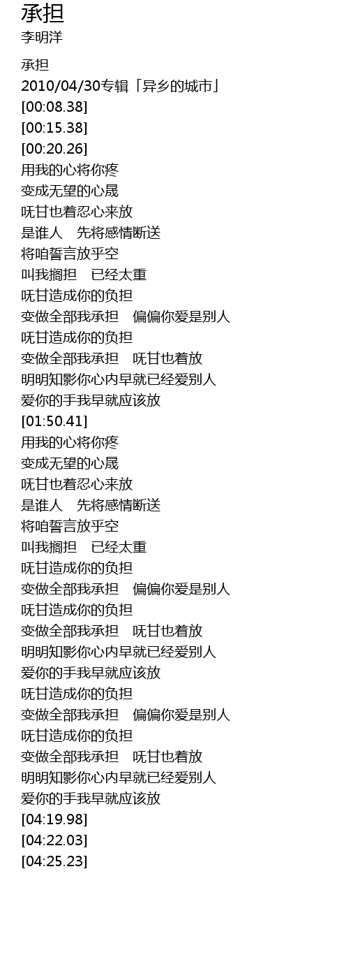 | [01:09.01] | 变做全部我承担 偏偏你爱是别人 |