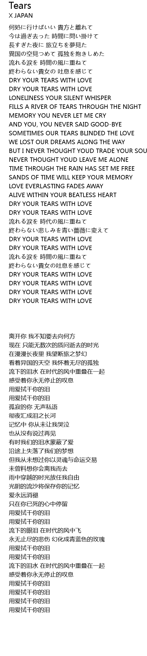 | 歌曲 | Tears |