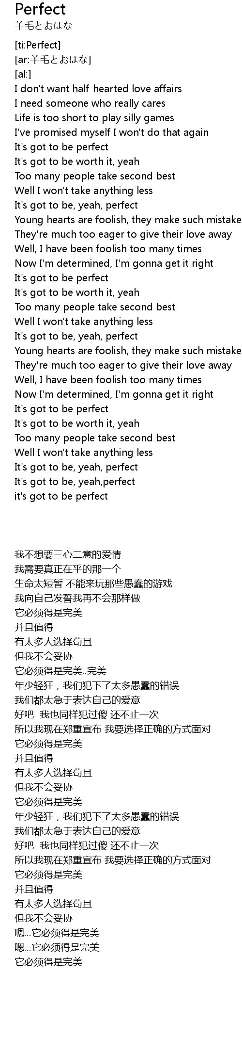 | [00:57.83] | It' s got to be, yeah, perfect |