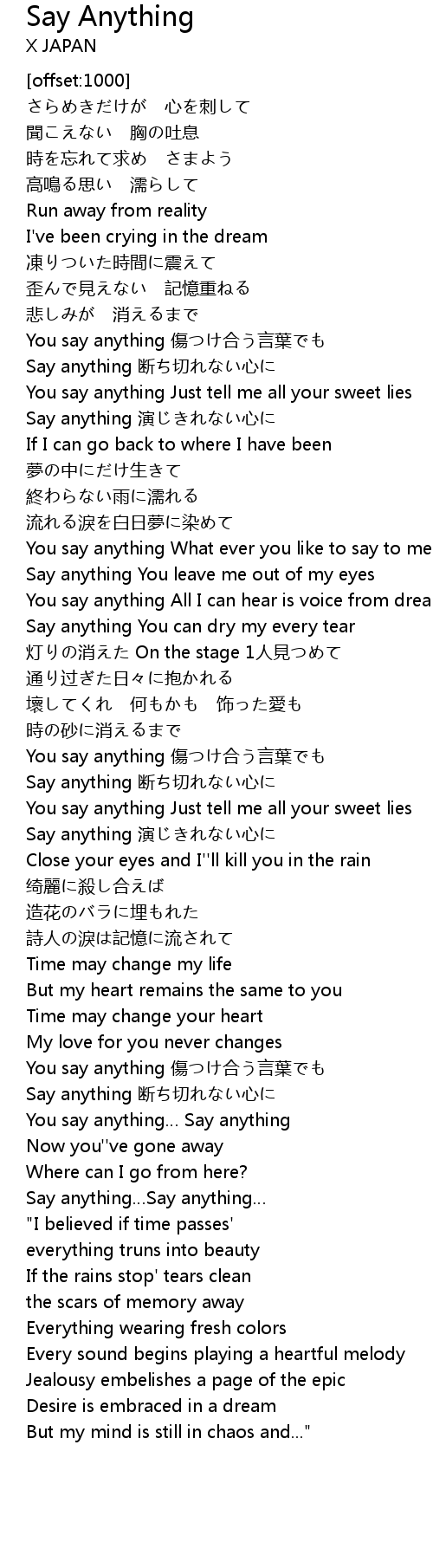 | [06:19.74] | You say anything 傷つけ合う言葉でも |