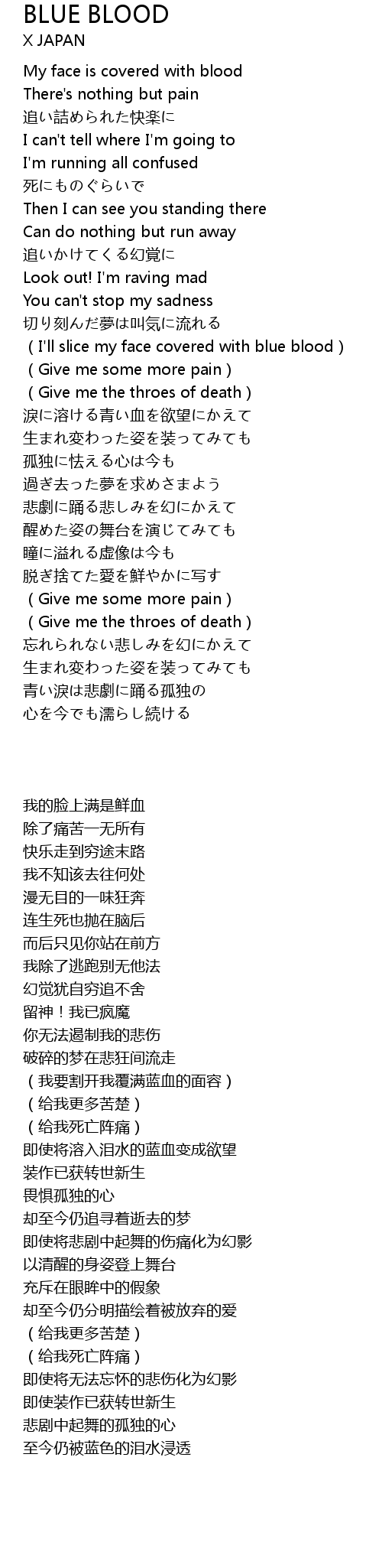 | [01:18.15] | I' ll slice my face covered with blue blood |