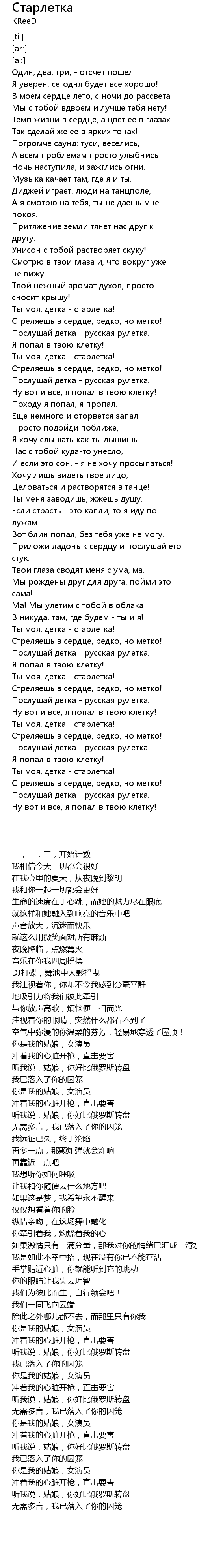 | [02:17.59] | Послушай детка - русская рулетка. |