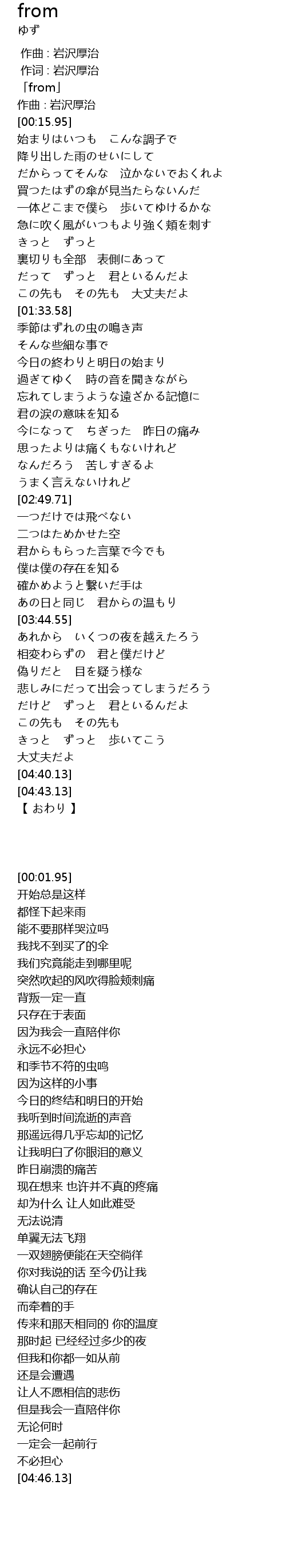 | [00:01.95] | 「from」 |