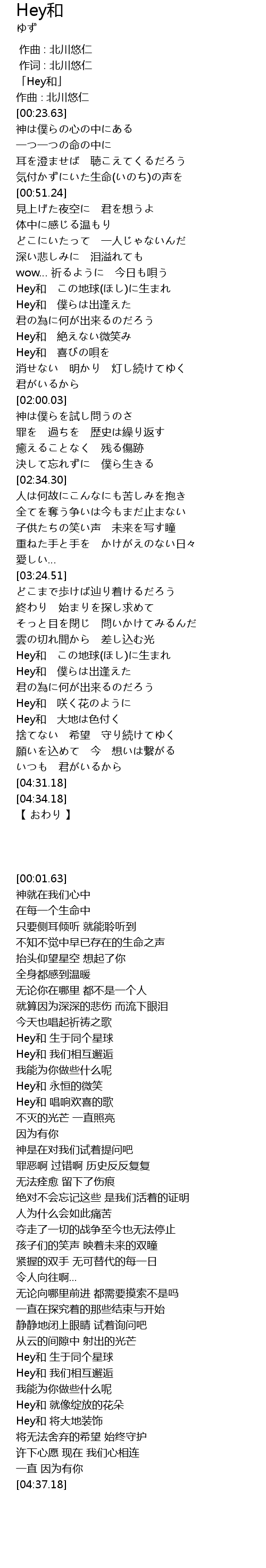 | [03:52.38] | Hey和 この地球(ほし)に生まれ |