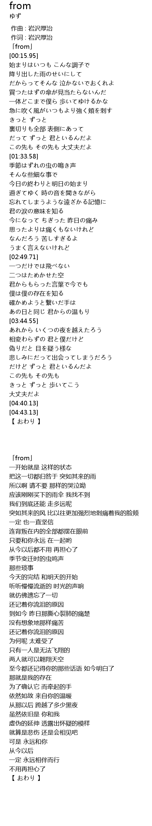 | [00:00.365] | 作词 : 岩沢厚治 |