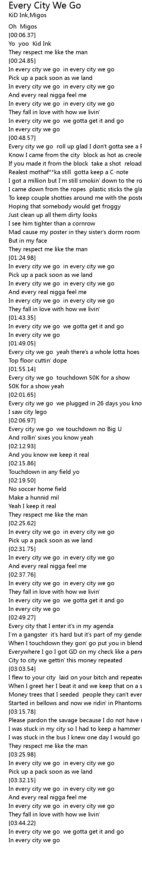 | [03:44.77] | In every city we go we gotta get it and go |