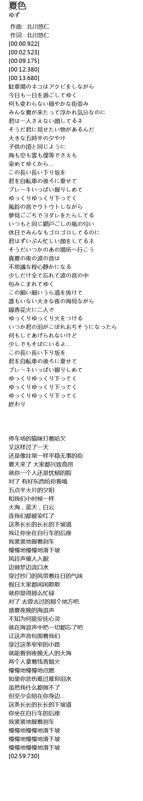 | [02:55.672] | 慢慢地慢慢地滑下坡 |