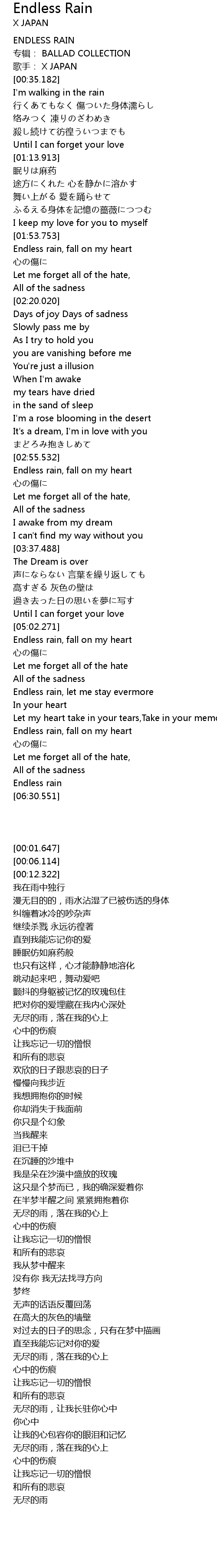 | [00:01.647] | ENDLESS RAIN |