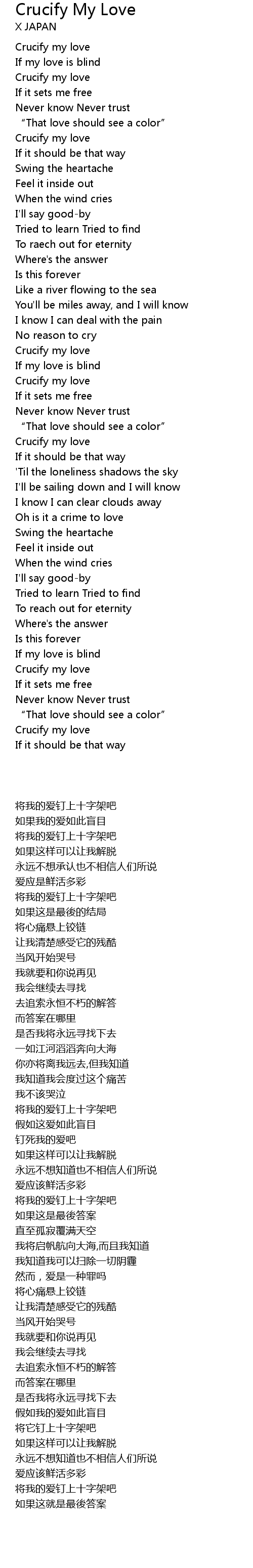 | 歌曲 | Crucify My Love |