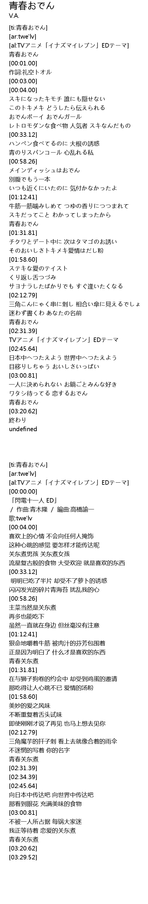 | [03:07.42] | ワタシ待ってる 恋するおでん |