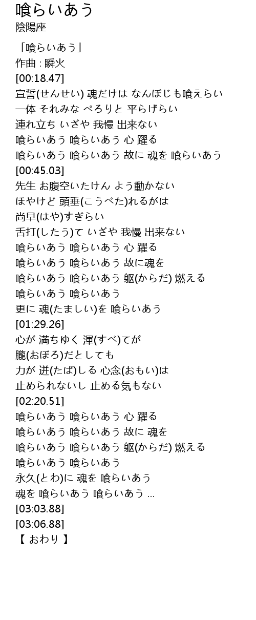 魂を 喰らいあう 喰らいあう ... |