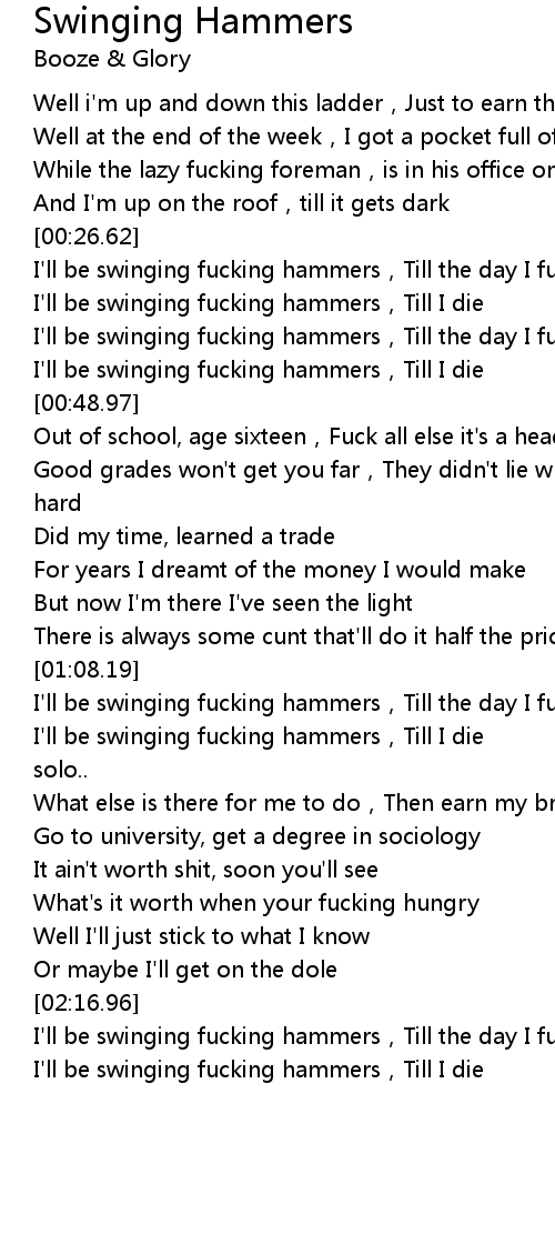 | [00:33.90] | I' ll be swinging fucking hammers, Till the day I fucking die |