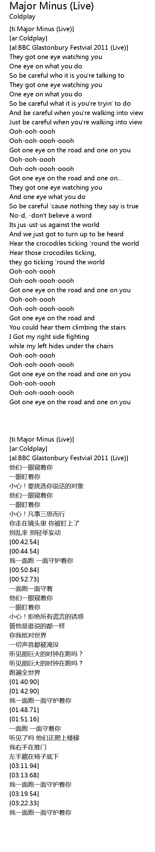 | [01:31.17] | Hear the crocodiles ticking ' round the world |