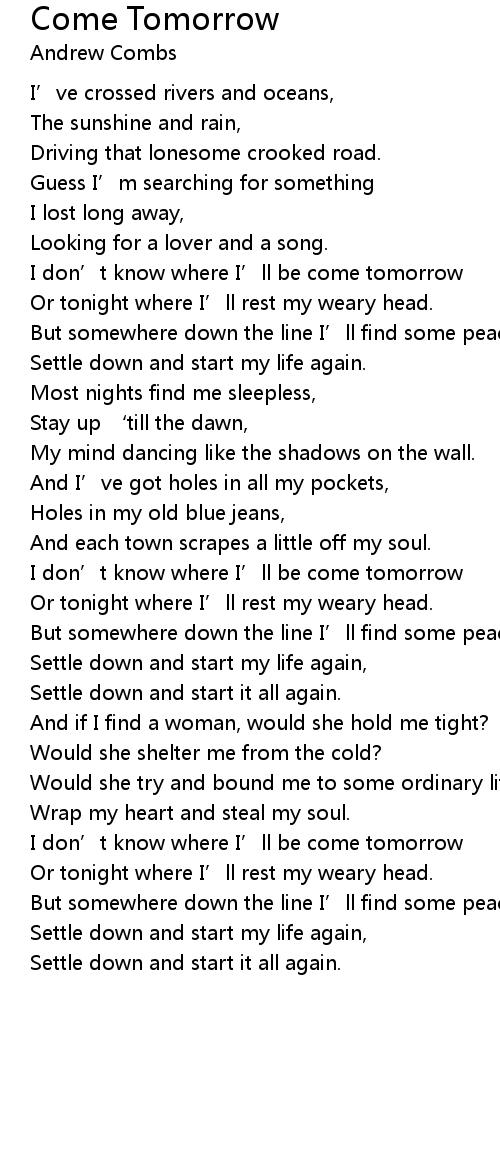 | I don’t know where I’ll be come tomorrow | |