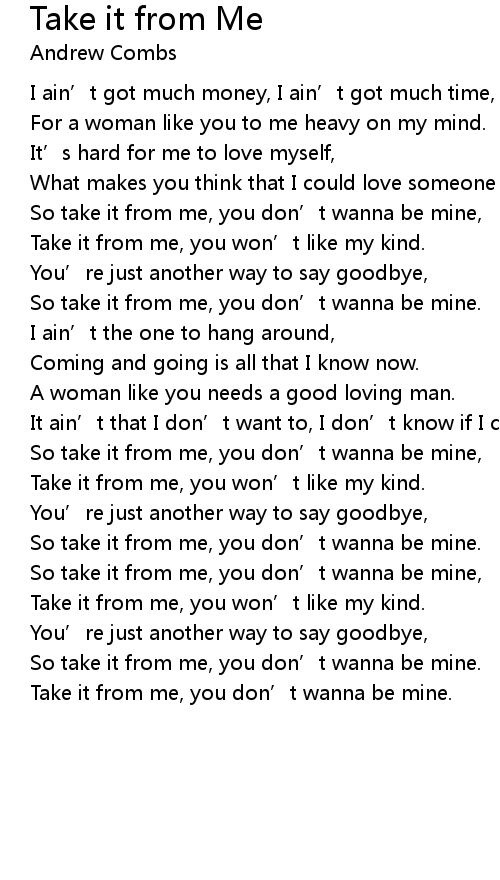 | So take it from me, you don' t wanna be mine, | |