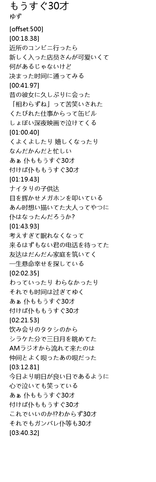 | [03:27.25] | 付けば仆ももうすぐ30才 |