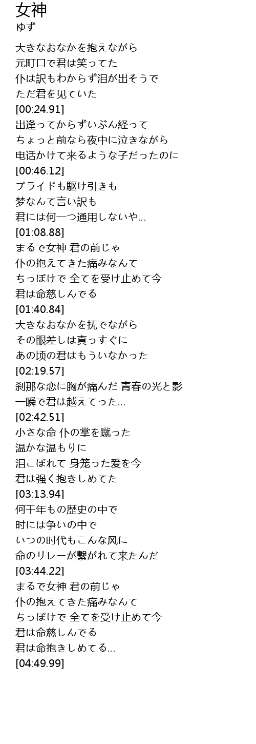 | [04:10.79] | まるで女神 君の前じゃ |