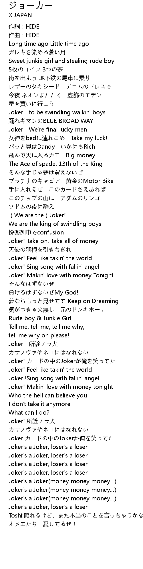 | [04:23.15] | Joker's a Joker(money money money…) |