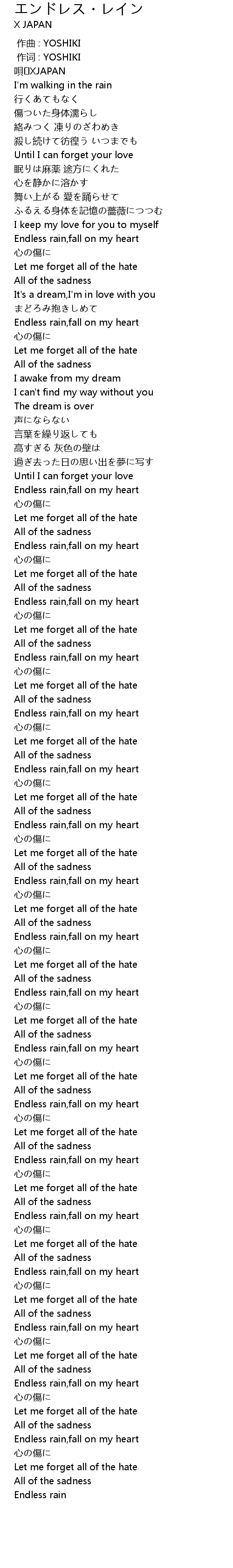 | [09:14.45] | Endless rain, fall on my heart |