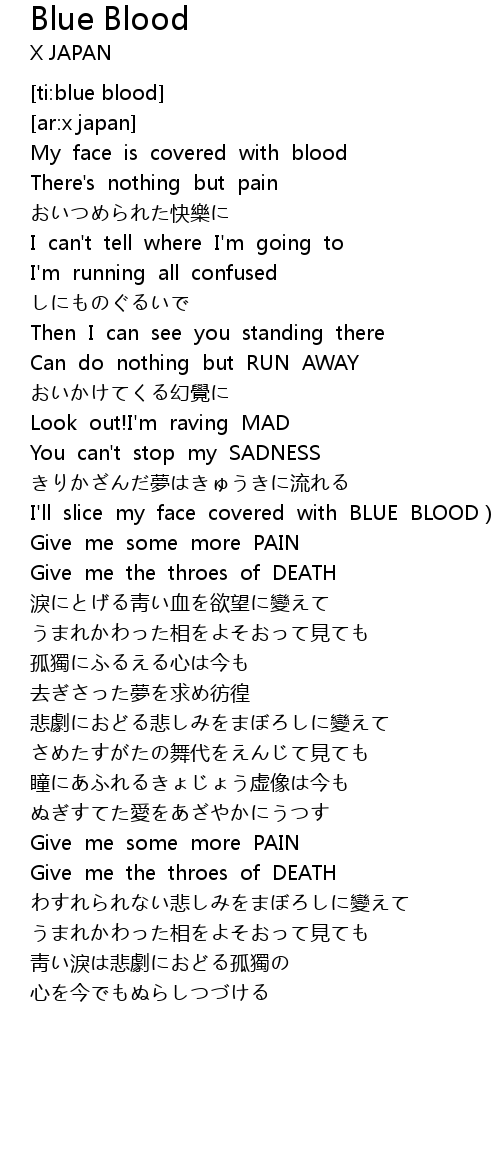 | [01:18.38] | I' ll slice my face covered with BLUE BLOOD |