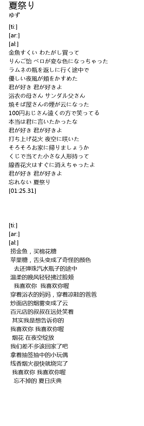 | [01:18.36] | 忘不掉的 夏日庆典 |