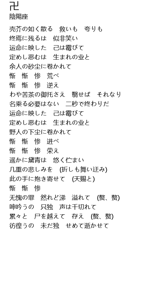 | 无愧の罪 然れど涕 溢れて (赘、赘) | |