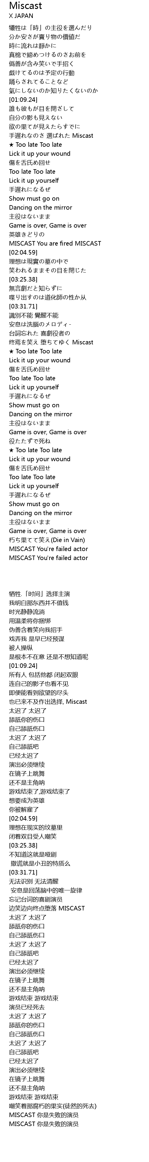 | [01:28.99] | 手遲れなのさ 選ばれた Miscast |