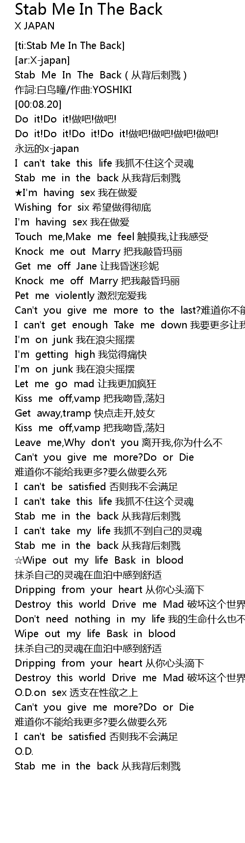 | [00:04.07] | Stab Me In The Back(从背后刺戮) |