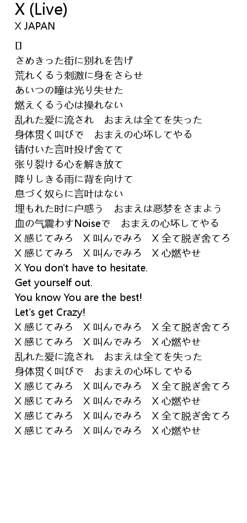 | X 感じてみろ X 叫んでみろ X 心燃やせ | |