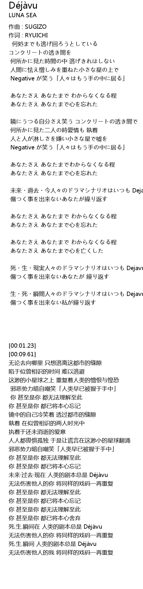 | [02:50.11] | 死.生.瞬间在 人类的剧本总是 Déjàvu |