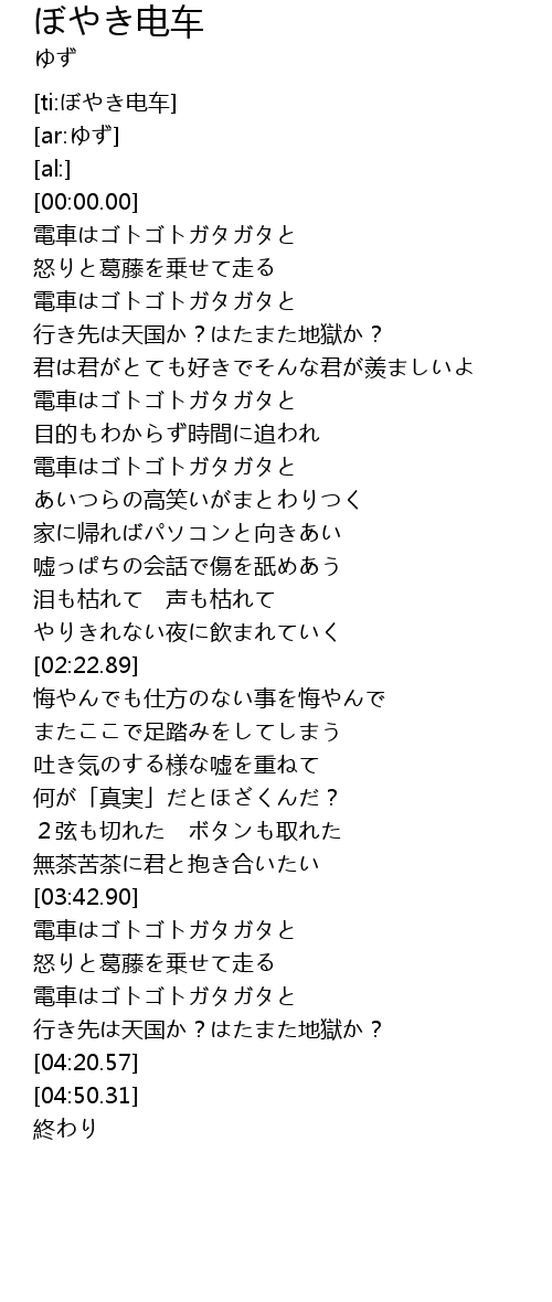 | [04:05.58] | 電車はゴトゴトガタガタと |