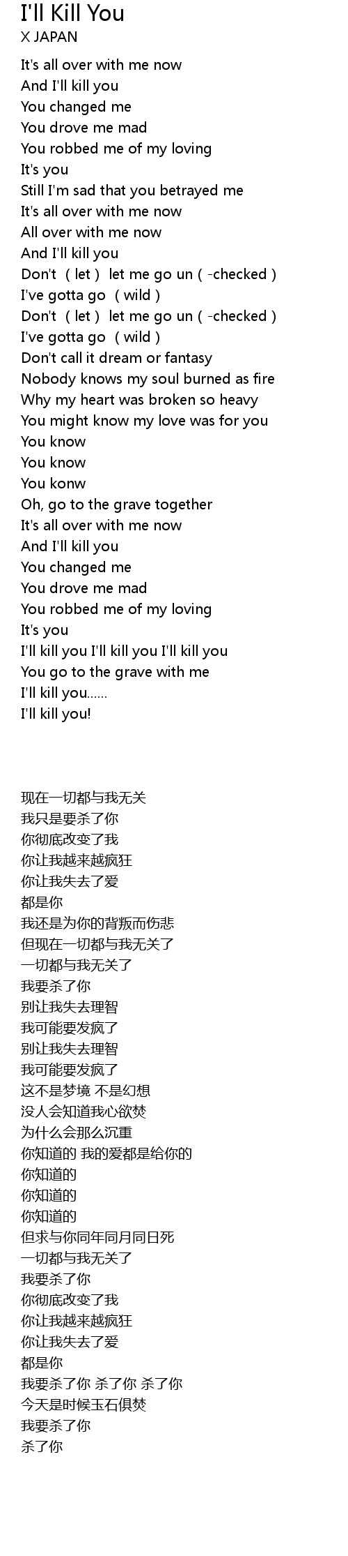 | [02:40.08] | I'll kill you I'll kill you I'll kill you |