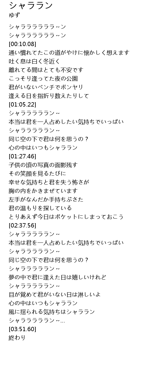 | [03:14.63] | 風に揺られる気持ちはシャララン |