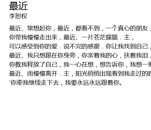 | 最近、常想起你,最近,都看不到,一个真心的朋友, | |